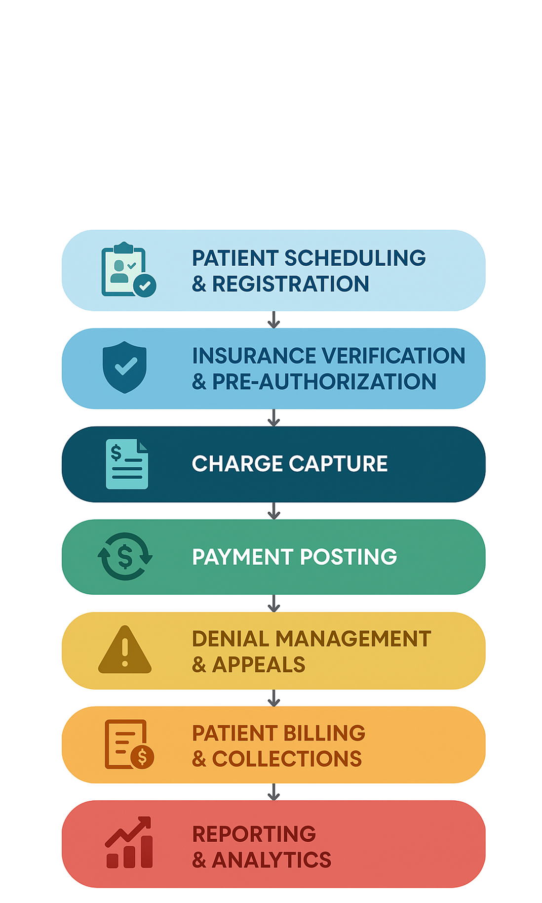 Built for scalability, AdvancedMD supports growing practices with powerful billing and reporting tools. We integrate seamlessly with AdvancedMD to optimize workflows, improve reimbursement rates, and keep your revenue cycle running smoothly.